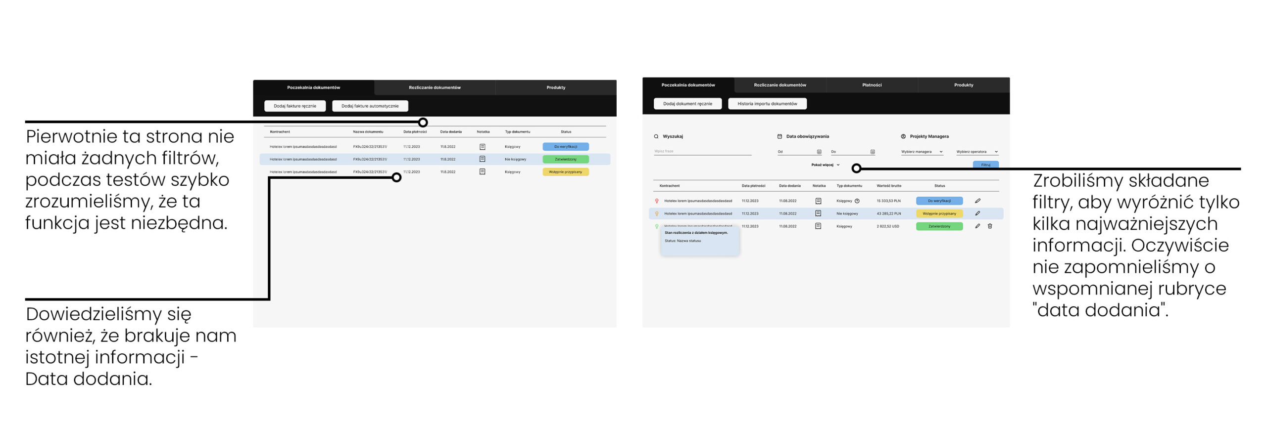 Przeprowadziliśmy testy użyteczności z pracownikami biura podróży, aby uzyskać feedback na temat makiet. Wykorzystaliśmy opinie, aby wprowadzić kilka zmian w projekcie, takich jak: