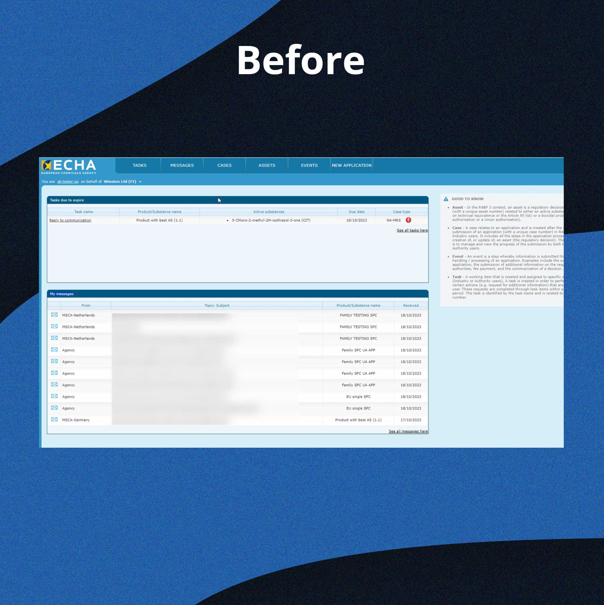 This case study details the creation of a central hub for the European Chemicals Agency, consolidating various modules to optimize user experience. The project emphasizes seamless navigation and intuitive design to facilitate efficient access to critical information and tools. Through rigorous user research, wireframing, and prototyping.
