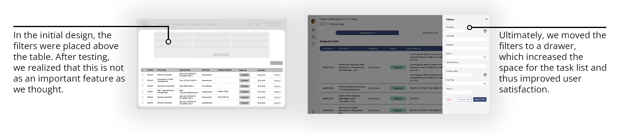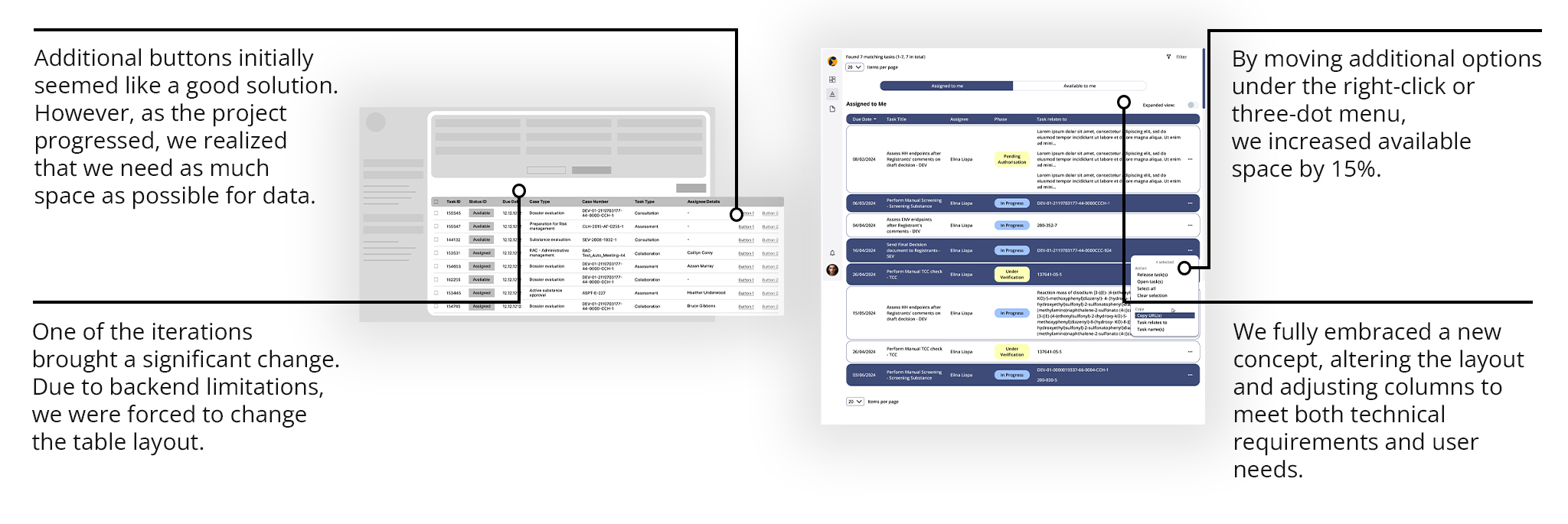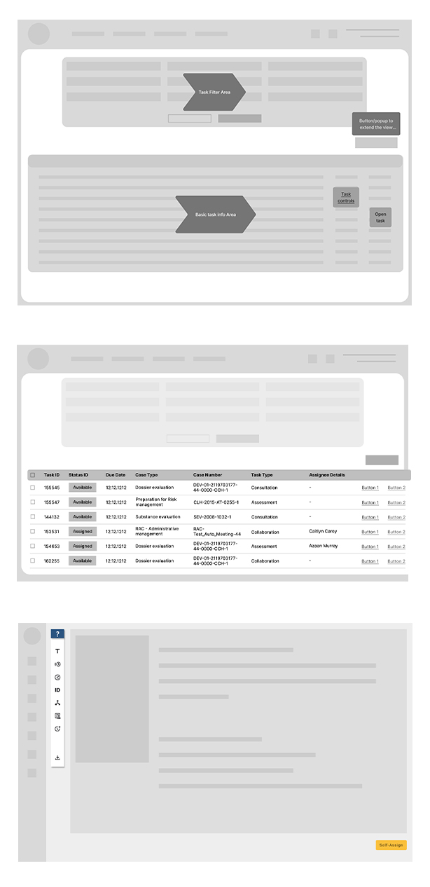 We planned a central hub that integrates all modules, featuring a task list and an open task view to maintain user focus on tasks while displaying necessary information simultaneously.